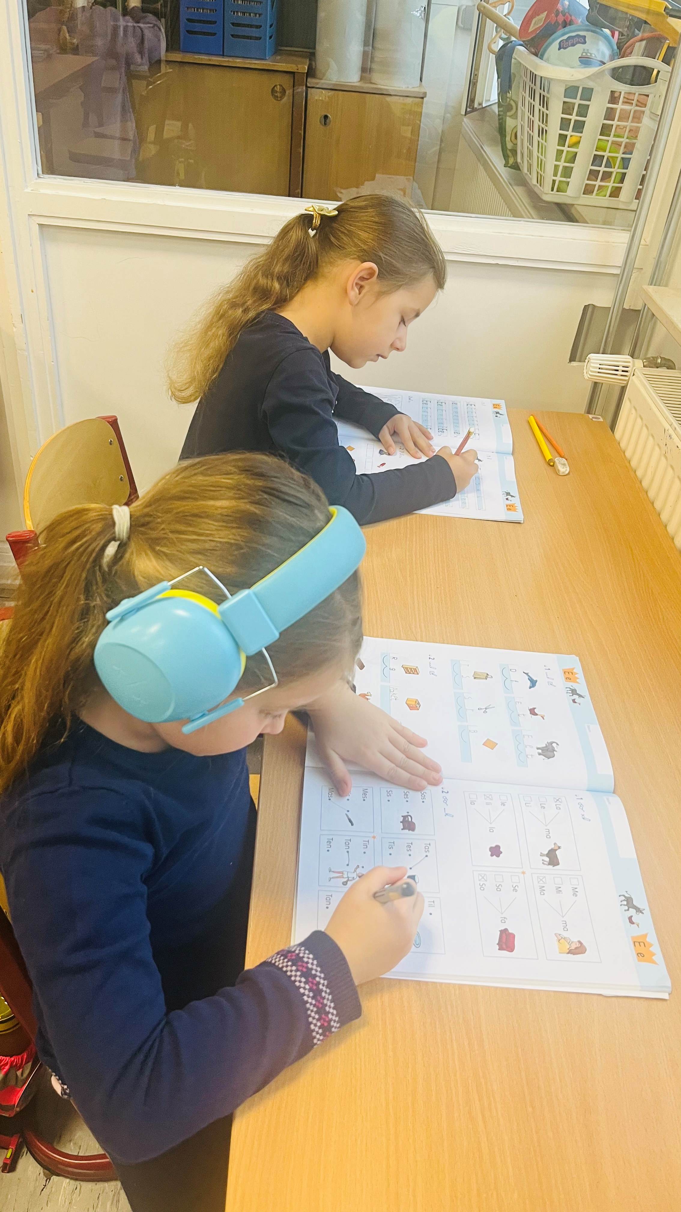 Für mehr Ruhe können die Schüler*innen Lärmschutzkopfhörer nutzen, wenn sie sich besonders gut fokussieren möchten. Außerdem sorgen kleine Aufstellbüros dafür, dass einzelne Arbeitsplätze geschützter und abgeschirmter sind. So entsteht eine abwechslungsreiche Lernumgebung, in der jedes Kind seinen eigenen Lieblingsarbietsplatz finden kann.