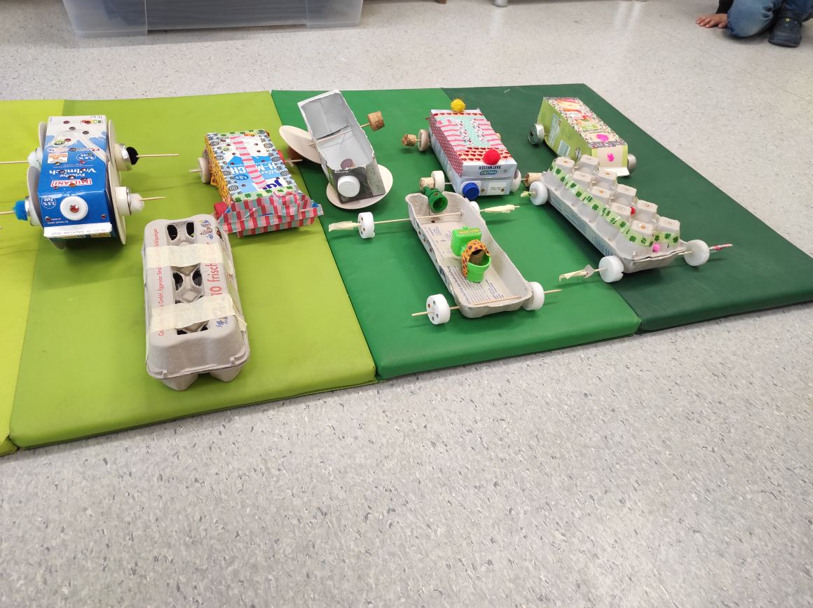 Die 2. Klassen haben tolle Fahrzeuge aus Müll gebastelt!